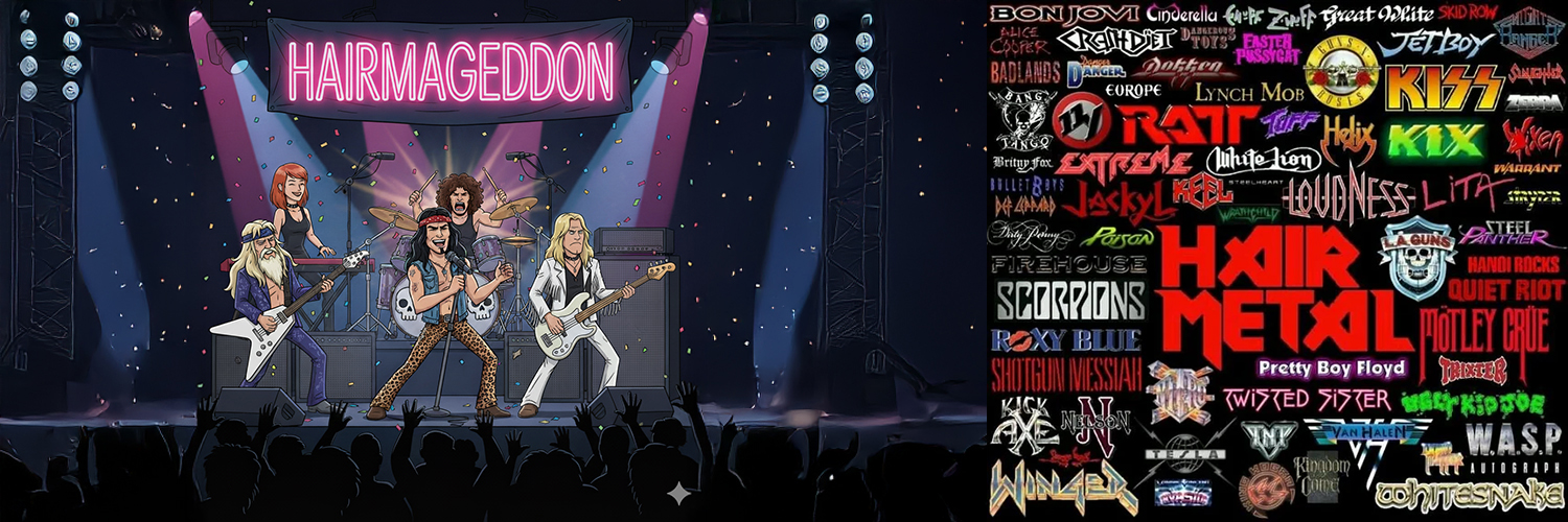 Dive into the time machine with Hairmageddon. This isn't just a band; it's a full-blown revival of the neon-soaked, big-haired, guitar-shredding era of the '80s. Imagine stepping back into the golden age of hair metal, where every riff is a call to party and every beat a heartbeat of rock 'n' roll rebellion.